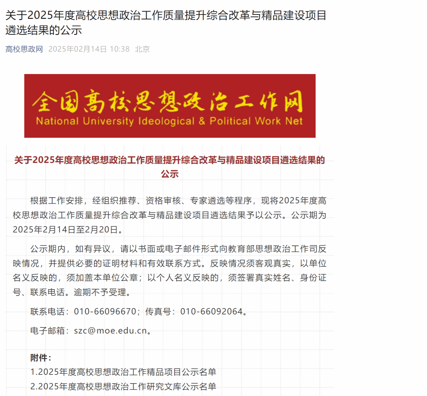 近日,教育部公示了2025年度高校思想政治工作質量提升綜合改革與精品建設項目遴選結果。我校共4個項目入選,其中,“‘1+3’圖書館傳統文化育人創新與實踐”項目入選2025年度高校場館育人作用開發名單、“以‘四向’育‘四實’培育拔尖創新人才‘中國心’”入選2025年度新時代偉大變革融入高校思想政治教育典型案例、“紅色走讀:江西省大中小學思政課一體化的‘足跡課堂’實踐育人探索”入選2025年度大中小學思想政治教育一體化建設工作典型案例、“心海樂園”入選2025年度學生綜合素質訓練基地,入選總數并列全省第一。
