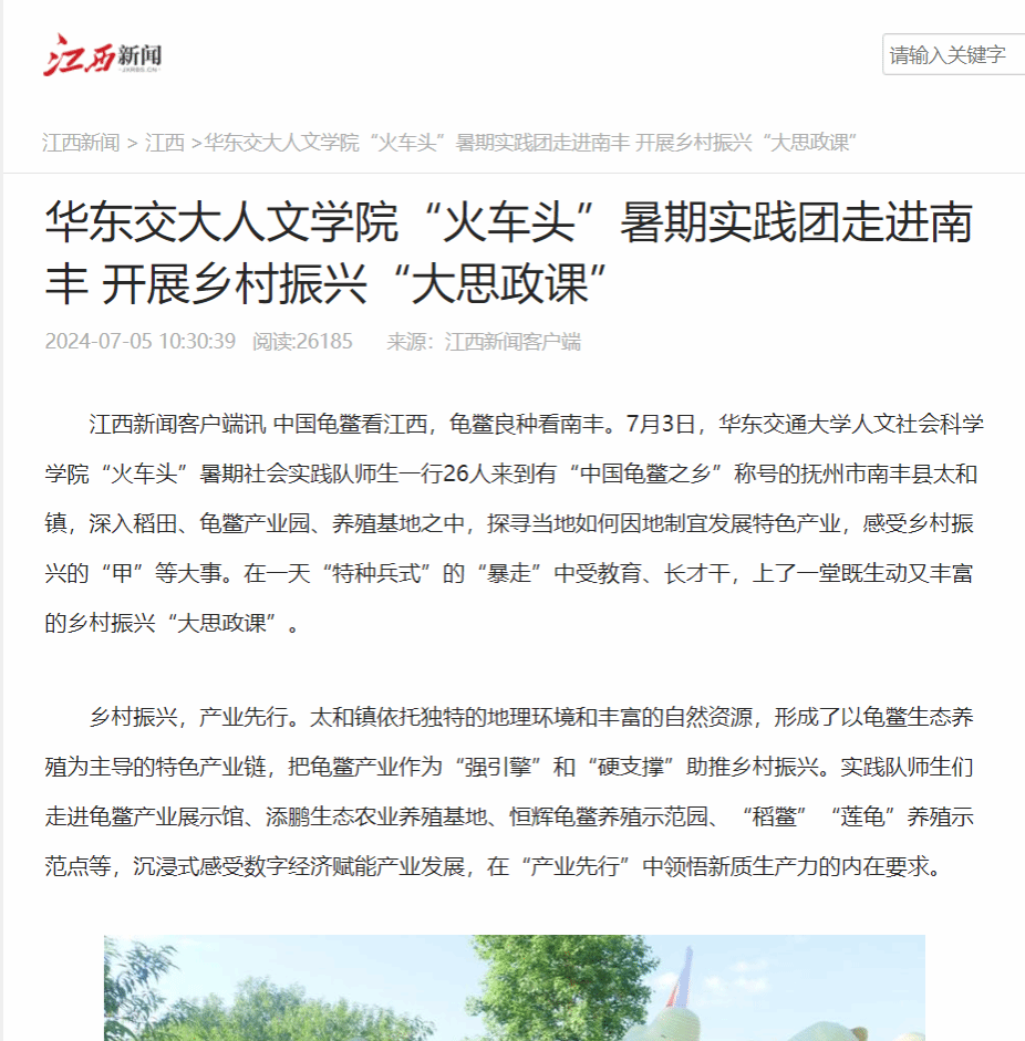 華東交大人文學院“火車頭”暑期實踐團走進南豐 開展鄉村振興“大思政課” 江西新聞_最權威的江西主流媒體 (jxxw.com.cn)