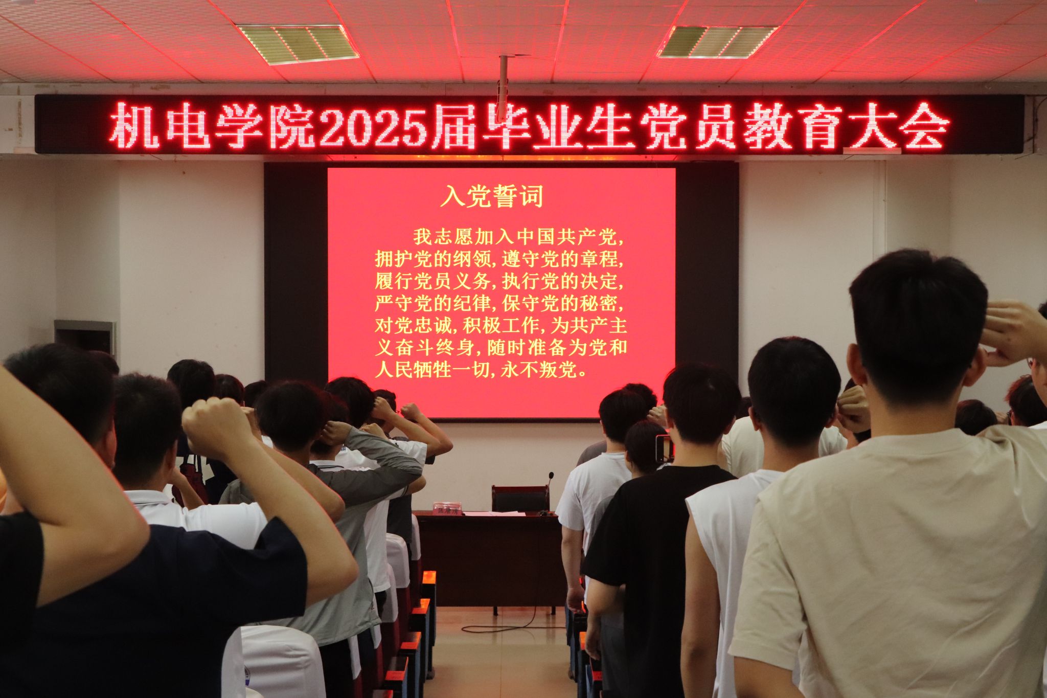 機電學院相關領導、各學生黨支部書記以及2025屆全體畢業生黨員參加會議。